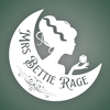 A decorative circular emblem featuring a silhouette of a woman with an updo hairstyle holding a die, surrounded by ornate gold detailing. The text inside the emblem reads "Mrs Bettie Rage."